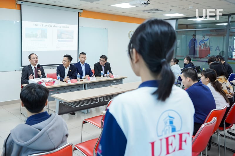 Đại diện UEF và doanh nghiệp tích cực giải đáp những thắc mắc của sinh viên về chương trình thực tập