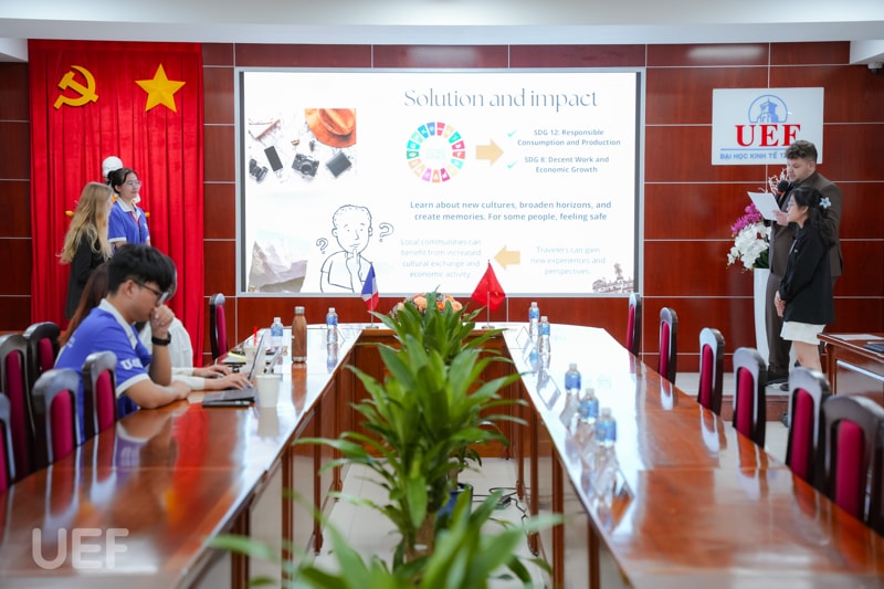 Trước cột mốc đánh dấu sự khép lại của hành trình này, các nhóm đã lần lượt báo cáo về thành quả của mình. Trước đó, các bạn đã được chia thành 5 nhóm gồm có sinh viên UEF và sinh viên CYU cùng tham gia lên ý tưởng phát triển các dự án. Các mô hình kinh doanh hướng đến sự quan tâm mạnh mẽ của xã hội hiện đại nói chung và giới trẻ nói riêng, xoay quanh việc nâng cao trải nghiệm của khách hàng trong du lịch, thưởng thức ẩm thực, ứng dụng AI vào quản lý hàng hóa và thiền.