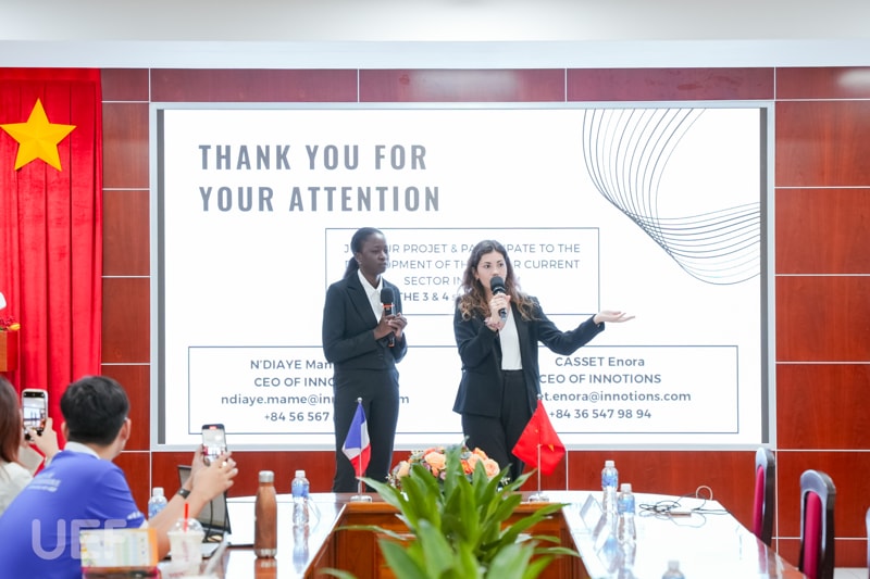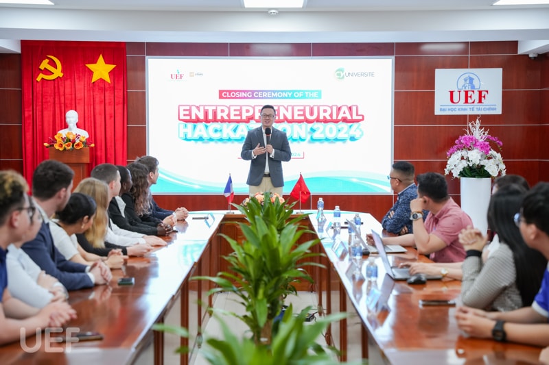 Thời gian một tuần không quá dài nhưng cũng đủ để UEFers và đoàn sinh viên đến từ CY Cergy Paris University, Pháp lưu dấu nhiều kỷ niệm. Trong buổi Closing Ceremony of the Entrepreneurial Hackathon 2024 vào chiều ngày 7/6, sinh viên hai trường đã báo cáo về thành quả của nhóm mình trong việc lên ý tưởng và phát triển các dự án kinh doanh. Bên cạnh đó, các bạn đã cùng nhau ôn lại những khoảnh khắc đáng nhớ trong suốt quá trình học tập và làm việc vừa qua. UEFers cũng không quên gửi những lời chúc tốt đẹp đến bạn bè quốc tế và thể hiện mong muốn kết nối lâu dài sau này.