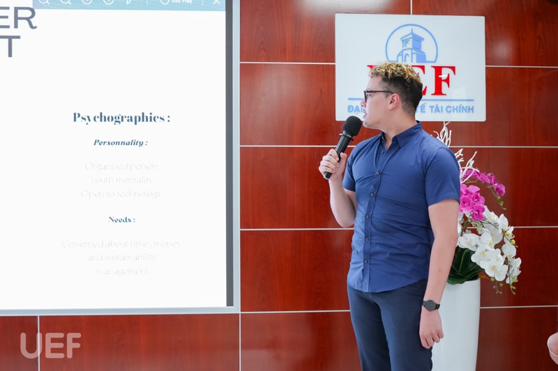Ứng dụng những bài học được tiếp thu tại UEF trong khoảng thời gian qua, các nhóm đã trình bày thực trạng đang tồn tại dẫn đến sự ra đời của dự án, phân tích chi tiết các vấn đề về phân khúc khách hàng dựa vào các yếu tố như nhân khẩu, vị trí địa lý, hành vi và mô tả chân dung khách hàng.