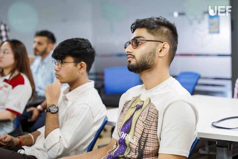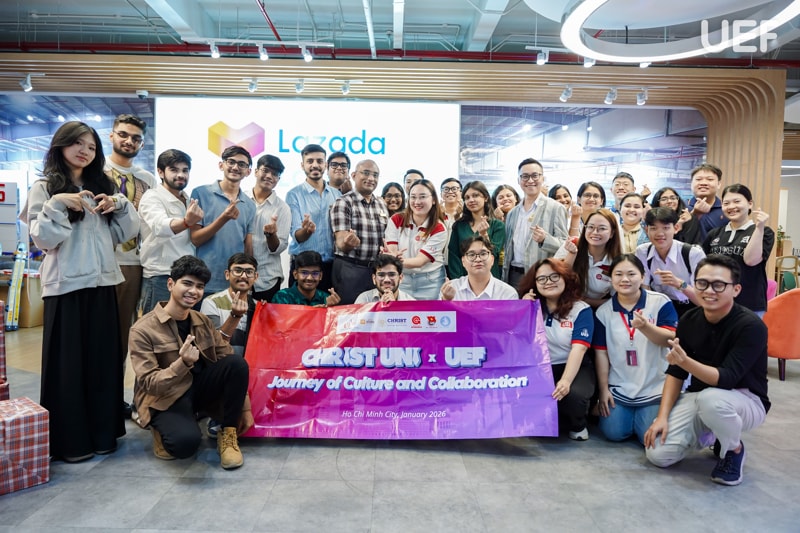 Chuyến tham quan có sự đồng hành của thầy cô lãnh đạo Khoa Kinh tế gồm TS. Majo George - Trưởng khoa, TS. Đỗ Thị Thu Hà - Phó Trưởng khoa, TS. Nguyễn Duy Quang - Trưởng ngành Kinh tế số cùng các giảng viên. Về phía đoàn Christ University có TS. Avichal Sharma - Assistant Professor.