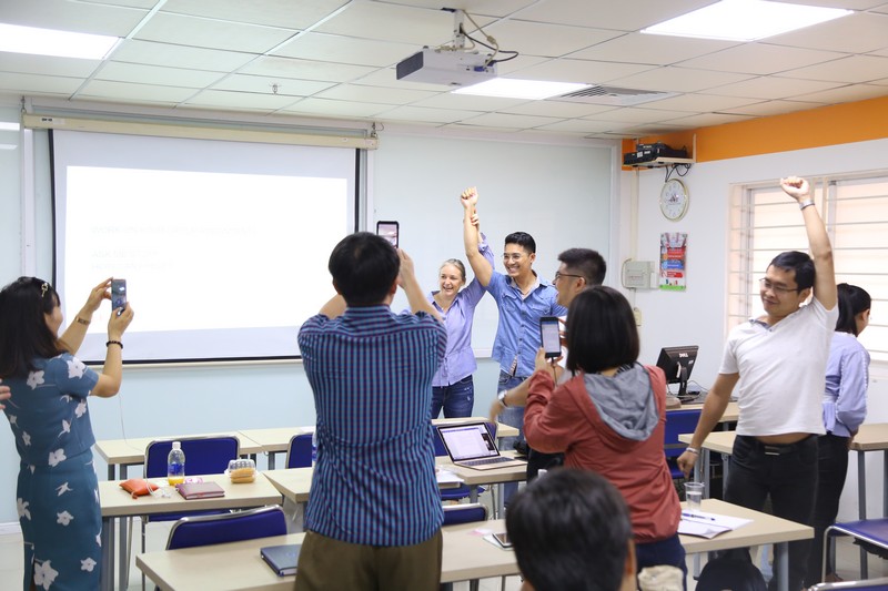 Trong phần chia sẻ của mình, CEO Vickie Helson còn chỉ ra sơ đồ hành trình của khách hàng và giải thích cặn kẽ sự quan trọng của việc nắm rõ sơ đồ này. Đặc biệt, không khí lớp học ngày cuối tuần càng thêm sinh động khi các học viên được tham gia trò chơi tương tác do diễn giả đề ra.
