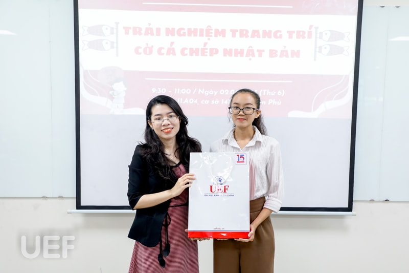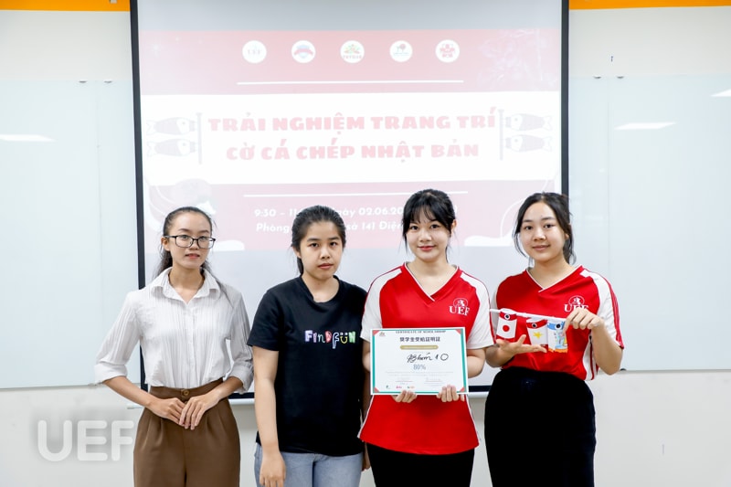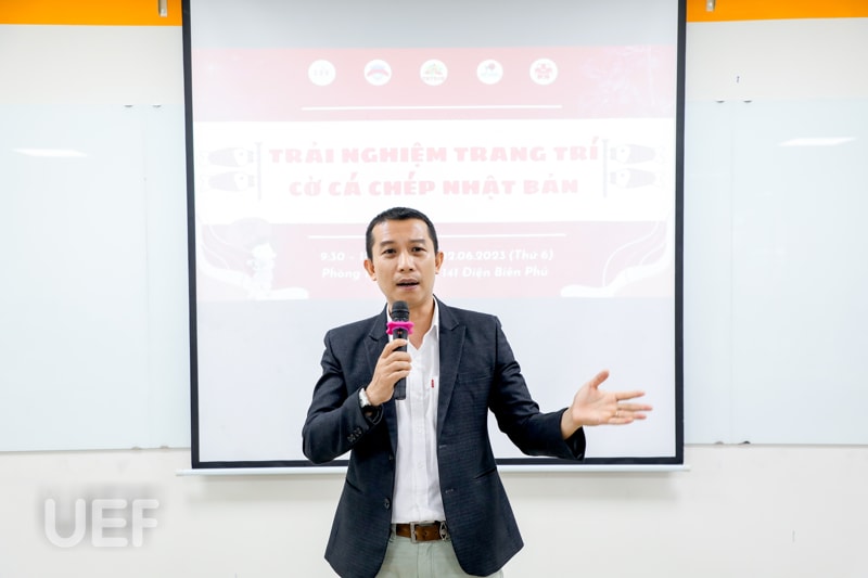 Nhằm tạo điều kiện cho sinh viên UEF nói chung, sinh viên ngành Ngôn ngữ Nhật nói riêng có cơ hội tìm hiểu và khám phá vẻ đẹp của những trò chơi dân gian từ xa xưa của đất nước mặt trời mọc, sáng 2/6, Khoa Ngôn ngữ và Văn hóa quốc tế phối hợp với Trung tâm Nhật Ngữ Tatosa và câu lạc bộ Hikari - Ngôn ngữ Nhật UEF tổ chức buổi workshop: Giới thiệu ngày Lễ Thiếu nhi Nhật Bản và cuộc thi trang trí cờ cá chép.