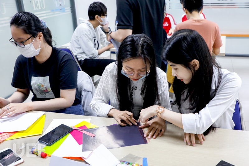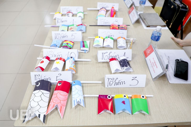 Sau khi được xem clip hướng dẫn, các nhóm lần lượt bắt tay vào thực hiện những lá cờ cá chép mang đậm phong cách Nhật Bản. Với những nguyên liệu đã được cung cấp sẵn như giấy thủ công, bút màu, băng keo,... UEFers đã được thỏa sức thể hiện khả năng sáng tạo của mình khi tự tay cắt dán và thổi hồn vào những chú cá chép rực rỡ sắc màu. Trong quá trình thi, các thí sinh sôi nổi tranh luận cũng như tập trung cao độ trong từng đường vẽ để tạo nên một thành phẩm chỉn chu nhất.