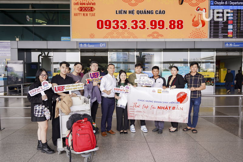 Từ 19/1 đến 22/1, tại sân bay Tân Sơn Nhất, thầy, cô Nhà UEF đã có buổi tiễn chân đầy ý nghĩa dành cho 6 sinh viên sang Nhật Bản, khởi động kỳ thực tập doanh nghiệp quốc tế. Đây là cột mốc quan trọng trong hành trình học tập, cũng vừa là cơ hội để các bạn trải nghiệm, khám phá và phát triển bản thân trong môi trường mới.