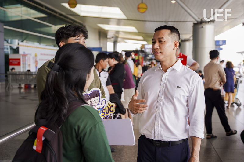 Đại diện UEF dặn dò những thông tin quan trọng trước khi 6 bạn sinh viên khởi hành
