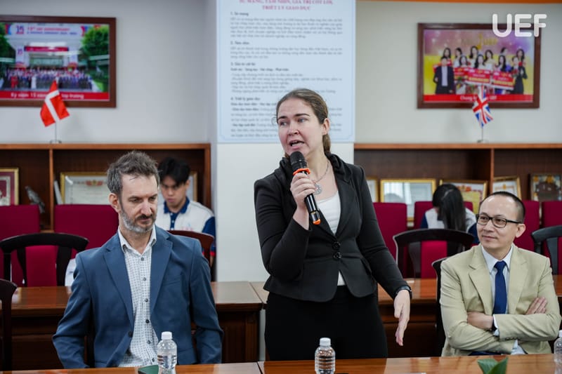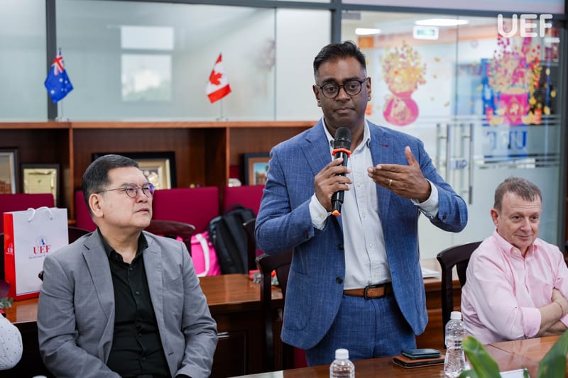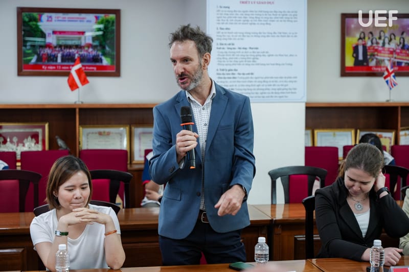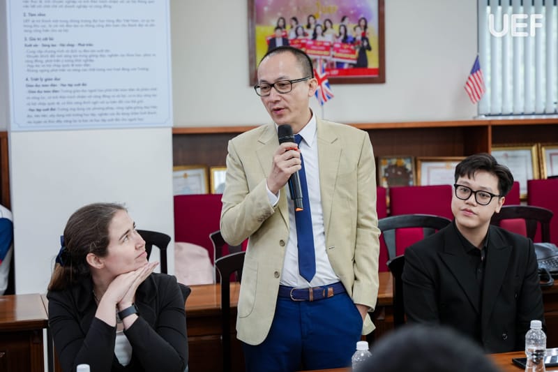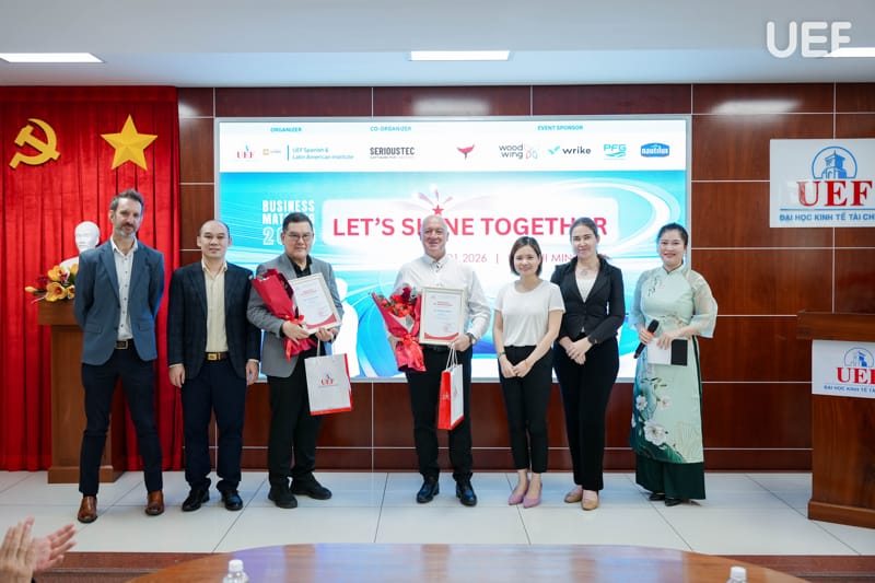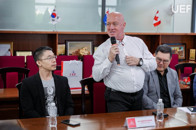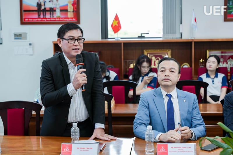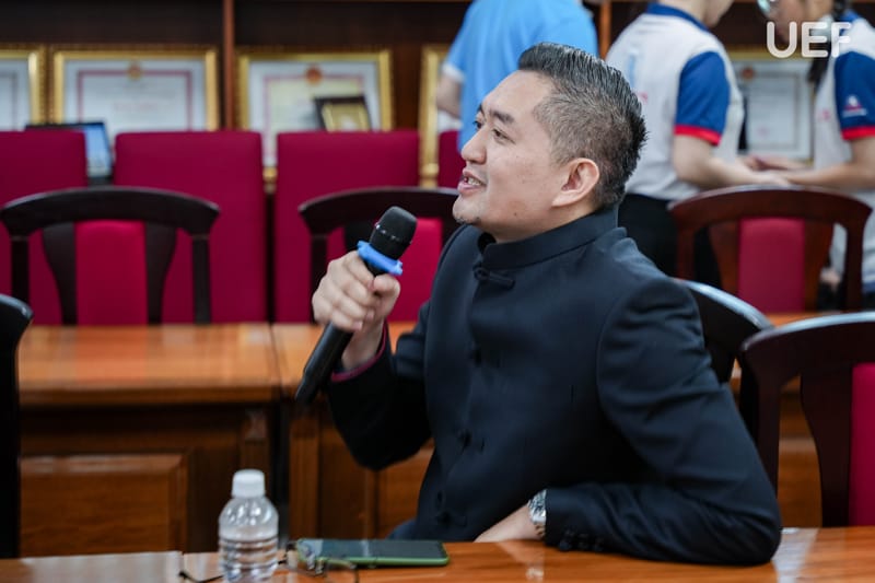 Phát biểu khai mạc chương trình, ThS. Nguyễn Quốc Việt nhấn mạnh định hướng nhất quán của UEF trong việc tăng cường kết nối với cộng đồng doanh nghiệp quốc tế, xem đây là nền tảng quan trọng để xây dựng môi trường đào tạo gắn với thực tiễn, đồng thời tạo điều kiện để các đối tác gặp gỡ, chia sẻ và tìm kiếm cơ hội hợp tác lâu dài. Với chủ đề “Let’s Shine Together”, chương trình được kỳ vọng sẽ trở thành cầu nối mở ra nhiều giá trị hợp tác bền vững trong thời gian tới.