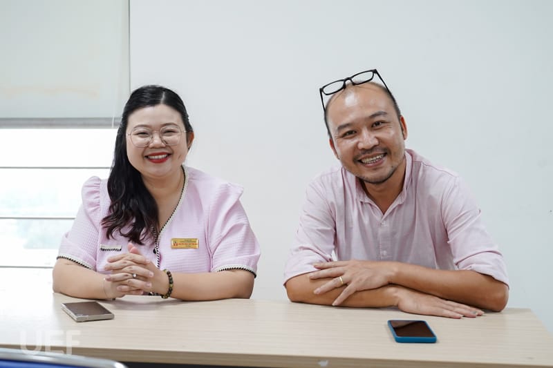 Đại diện UEF đồng hành và ủng hộ tinh thần của các bạn có ThS. Huỳnh Quốc Phong - Giám đốc Trung tâm Hợp tác doanh nghiệp, ThS. Nguyễn Ngọc Thủy Tiên - Phó Trưởng khoa Quản trị kinh doanh. Về phía nhà tuyển dụng phỏng vấn có ông Nakayama Ken - Giám đốc Nakayama Agency, đại diện IFK Nhật Bản.