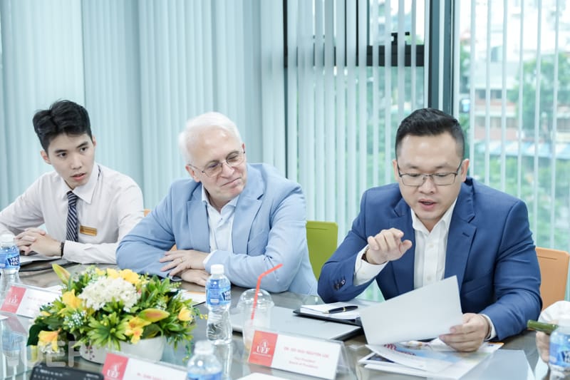 Tham dự buổi làm việc vào chiều ngày 13/9, đại diện UEF có TS. Đỗ Hữu Nguyên Lộc - Phó Hiệu trưởng Nhà trường, GS.TS. Eric Jose Olmedo Panal - Viện trưởng Viện Quốc tế cùng các nhân viên của Viện.