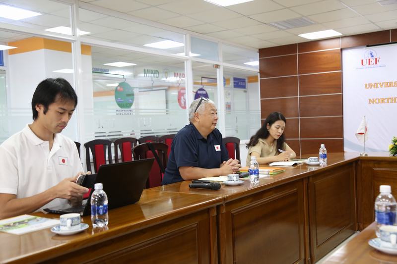 Buổi làm việc có sự hiện diện của ông Kazuyoshi Tsukagoshi - Chủ tịch Hiệp hội Hỗ trợ Thực tập Nhật Bản, ông Takahisa Takeishi - Giám đốc Hiệp hội Hỗ trợ Thực tập Nhật Bản, bà Bùi Quỳnh Trang - Giám đốc JAPIV. Đại diện UEF có TS. Đỗ Hữu Nguyên Lộc - Viện trưởng Viện quốc tế, TS. Võ Văn Thành Thân - Phó Trưởng khoa Ngoại ngữ và Văn hóa quốc tế cùng các giảng viên và chuyên viên quốc tế.