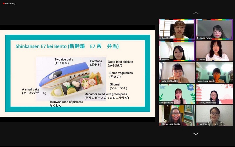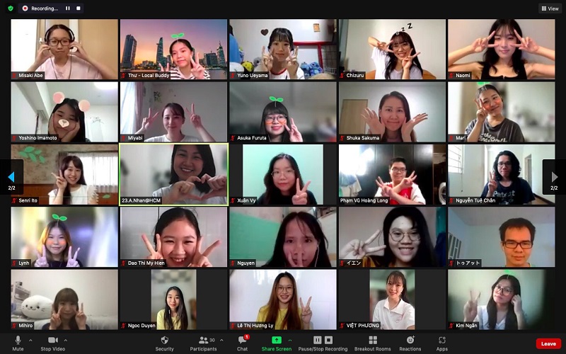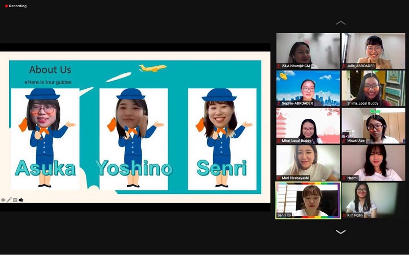 Vì tình hình dịch bệnh, các buổi giao lưu được tổ chức trực tuyến với nhóm sinh viên Nhật Bản gồm 12 bạn đến từ nhiều trường đại học danh tiếng như Ritsumeikan Asia Pacific University, Keio University, Ohkagakuen University,... Giảng viên phụ trách hoạt động giao lưu là ThS. Nguyễn Thị Thanh Nhàn - Trợ lý Trưởng khoa khoa Ngôn ngữ và Văn hóa quốc tế UEF.