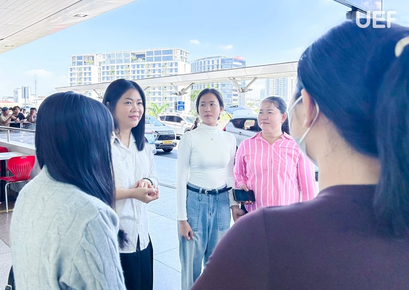 Sinh viên ngành Ngôn ngữ Nhật UEF cùng giảng viên và gia đình tại sân bay trước giờ khởi hành