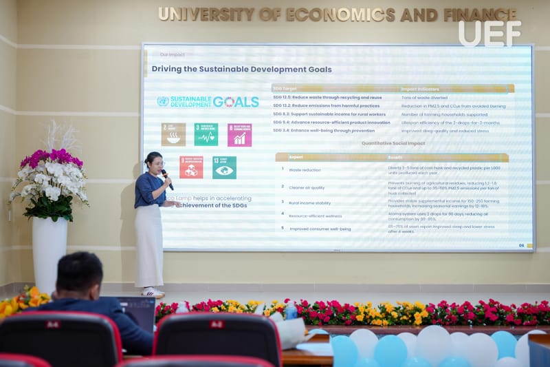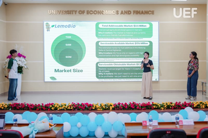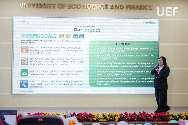 Tại cuộc thi, sinh viên UEF, VLU và MCUT được chia thành 7 đội, cùng nhau phát triển ý tưởng và hoàn thiện đề cương dự án khởi nghiệp. Với chủ đề liên quan đến SDGs, các đội đã trình bày những dự án kinh doanh sáng tạo xoay quanh các chủ đề mang tính toàn cầu: sản phẩm sinh học bền vững (LemoBio), kính AI hỗ trợ người khiếm thị (Socialeyes), giải pháp giảm khí thải ngành khách sạn, nền tảng bền vững Nuviro, mô hình nhà ở - chăm sóc người cao tuổi GEN-LINK, sản phẩm tái chế RocóLamp,.... Các đề tài đều hướng đến giải quyết những vấn đề xã hội - môi trường cấp thiết, thể hiện tư duy toàn cầu và khả năng ứng dụng thực tiễn.