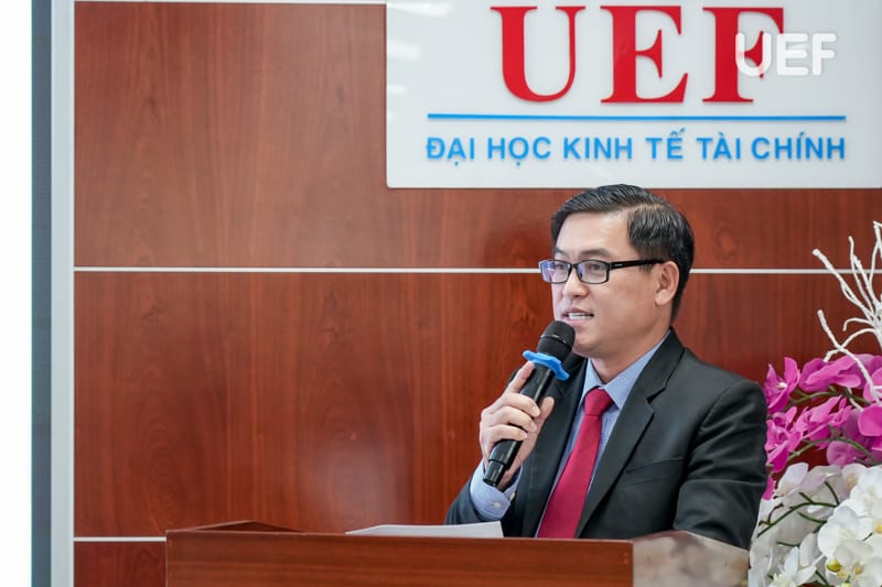 TS. Nhan Cẩm Trí - Phó Hiệu trưởng UEF phát biểu mở đầu buổi lễ