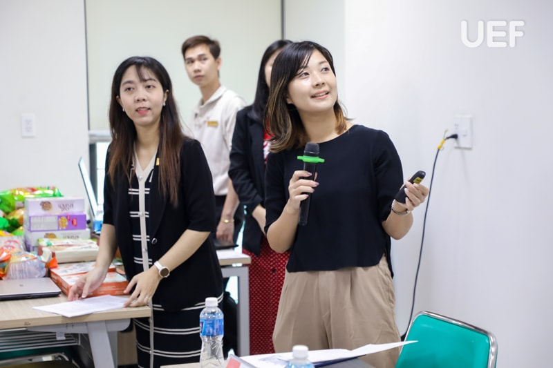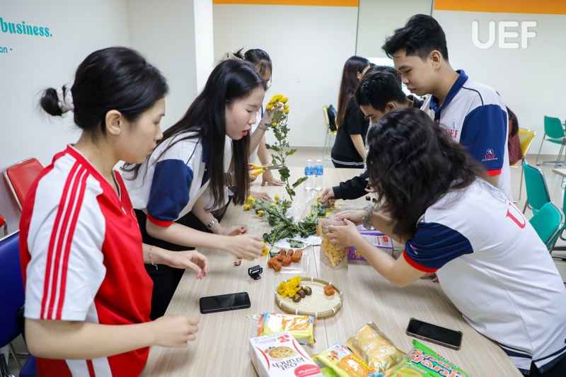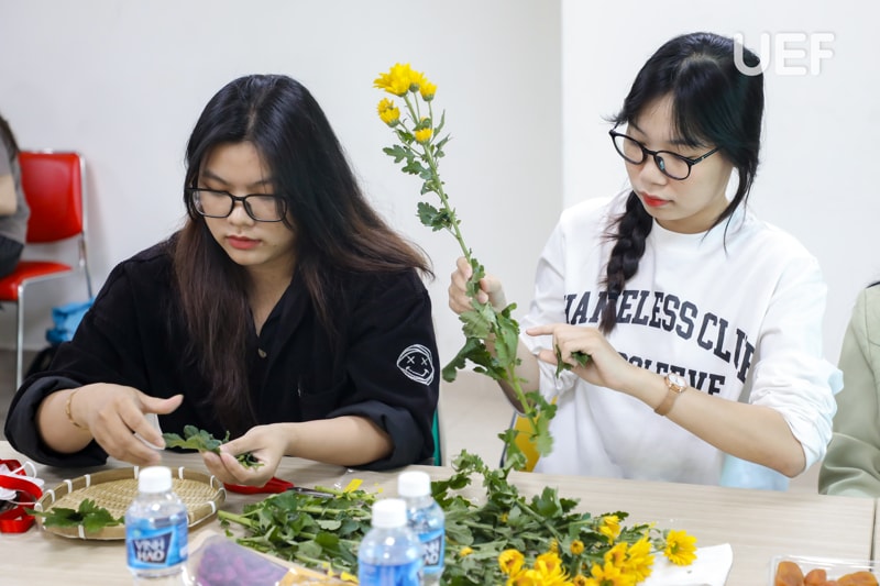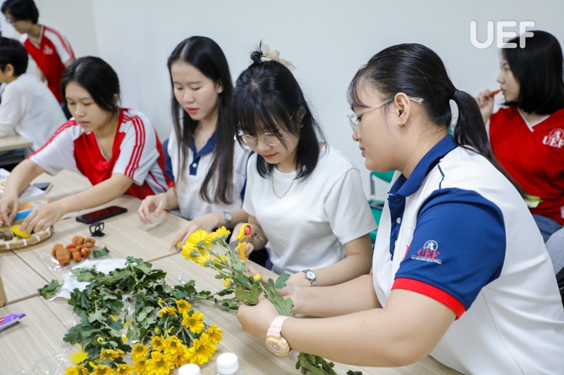 Bên cạnh phần chia sẻ lôi cuốn, chương trình còn mang đến trải nghiệm thực tế cho UEFers. Hoạt động thực hành không chỉ giúp các bạn phát huy tinh thần đồng đội mà còn khéo léo ứng dụng những kiến thức văn hóa đã học vào thực tế, tạo nên những thành phẩm vừa đẹp mắt vừa đậm chất truyền thống.