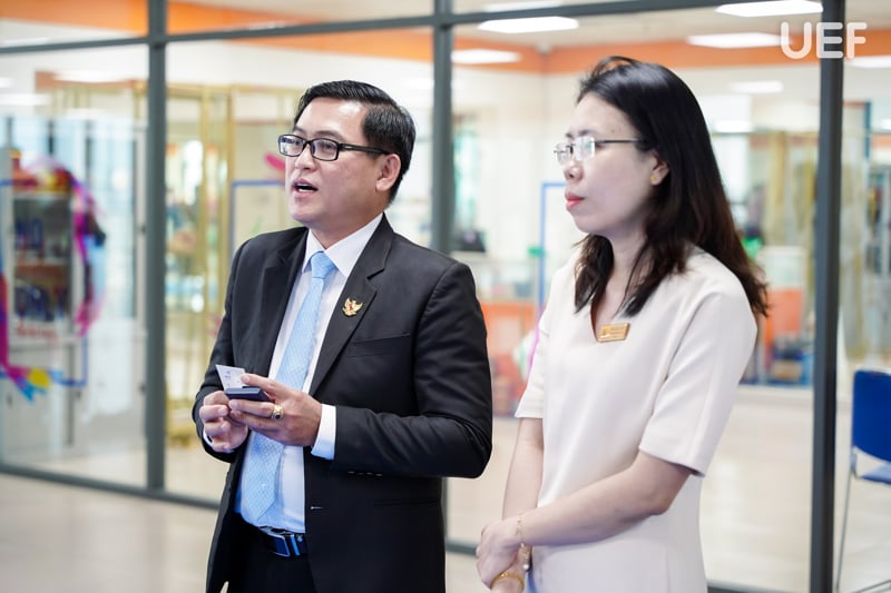 Phát biểu chào mừng đoàn sinh viên, TS. Nhan Cẩm Trí nhấn mạnh tầm quan trọng của hoạt động giao lưu, trao đổi văn hóa, kết bạn và học hỏi thêm ngôn ngữ giữa hai trường. Điều này giúp các bạn rèn luyện kỹ năng ngôn ngữ và bổ sung kiến thức về văn hóa các nước. Đồng thời, thầy cũng chia sẻ thêm về thông tin chương trình đào tạo và mô hình gắn kết thực tiễn của Nhà UEF.