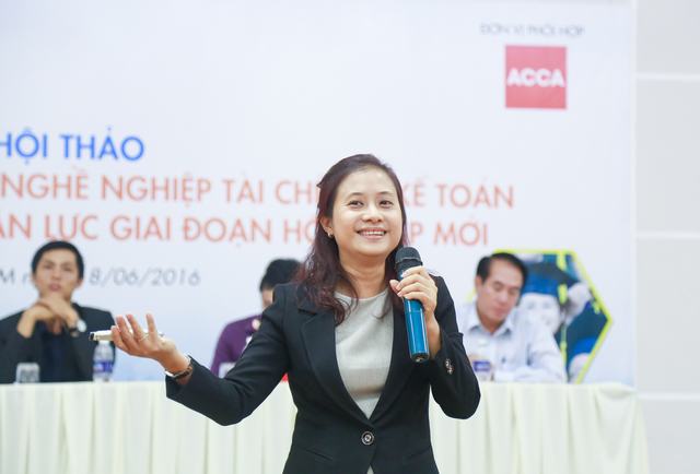 Bà Biện Thị Hằng Nga – Trưởng ban đối ngoại ACCA đưa ra những ý kiến, đóng góp của mình.