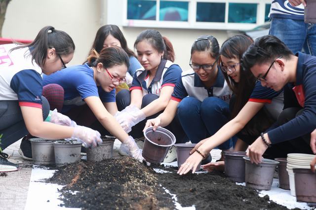 Các bạn sinh viên chung tay tạo nên những vườn cây ngập tràn sắc xanh