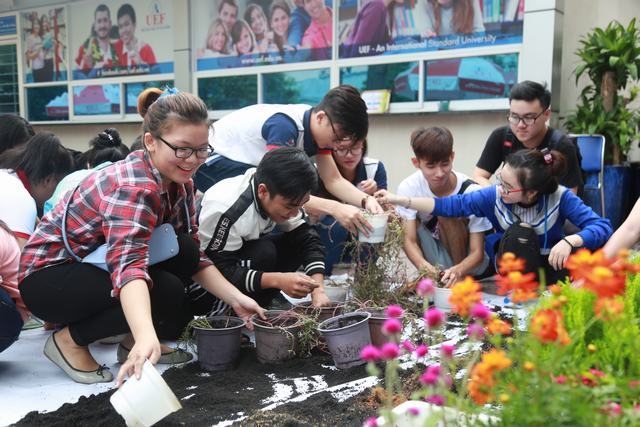 Nằm trong chuỗi hoạt động chào đón Mùa hè xanh của các chiến sĩ tình nguyện Trường Đại học Kinh tế - Tài chính thành phố Hồ Chí Minh (UEF), vào sáng 22/06 ngay tại sân trường, Đoàn khoa Quản trị kinh doanh (QTKD) đã tổ chức chương trình “Green Day” với hoạt động trồng cây, ươm hoa, tạo nên những công trình vườn cây Thanh niên tại các trường học trên địa bàn đóng quân.