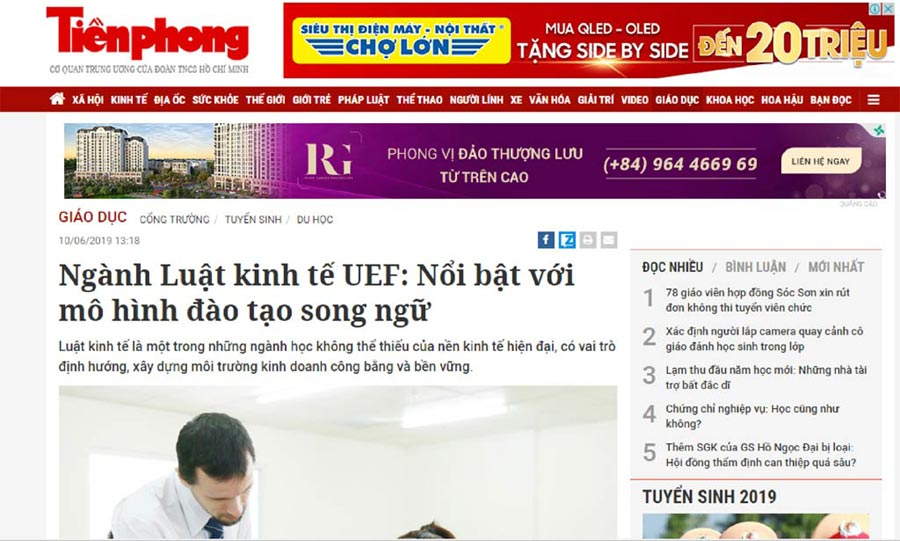 Tại UEF, ngành Luật kinh tế được đào tạo bài bản, giữa lý thuyết và thực tiễn với giáo trình được cập nhật thường xuyên theo tiêu chuẩn các đại học tiên tiến trên thế giới. Ngoài học kiến thức, sinh viên ngành Luật Kinh tế còn được trang bị các kỹ năng về tranh tụng tại tòa án, trọng tài thương mại quốc tế, khả năng sử dụng ngôn ngữ chuyên môn, đặc biệt là sử dụng thành thạo tiếng Anh chuyên về pháp lý để có thể trở thành các luật gia."