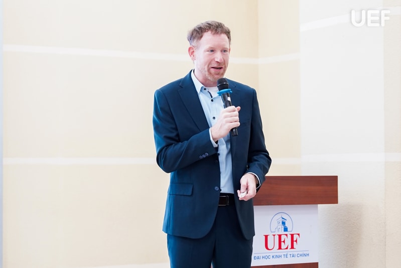 Phát biểu khai mạc Hội nghị, TS. Nhan Cẩm Trí - Phó Hiệu trưởng UEF đã nhấn mạnh trách nhiệm của các cơ sở giáo dục trong việc trang bị kiến thức và tư duy bền vững cho thế hệ trẻ. Thầy khẳng định UEF cam kết tạo ra một môi trường học tập không ngừng thúc đẩy sinh viên trở thành những nhà lãnh đạo có trách nhiệm, hiểu rõ vai trò của mình trong việc giải quyết các thách thức môi trường và xã hội.