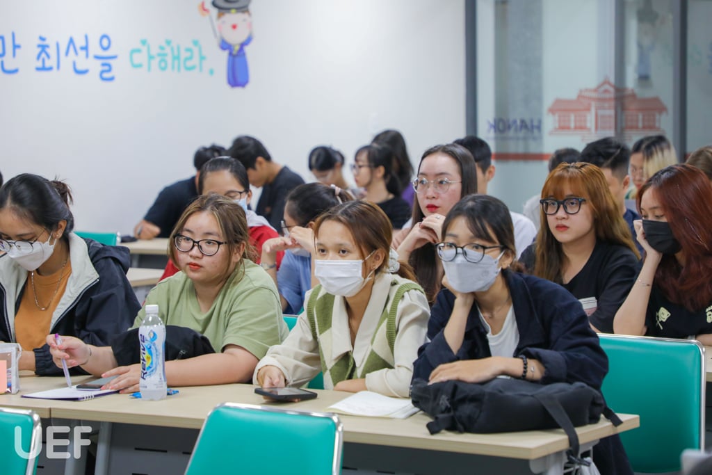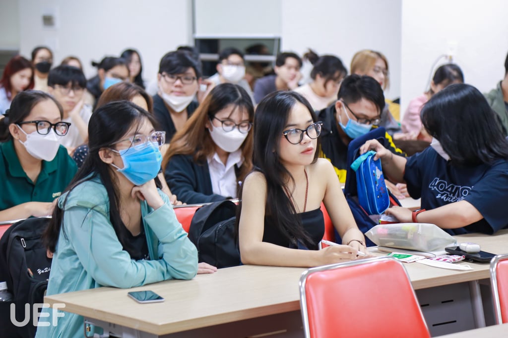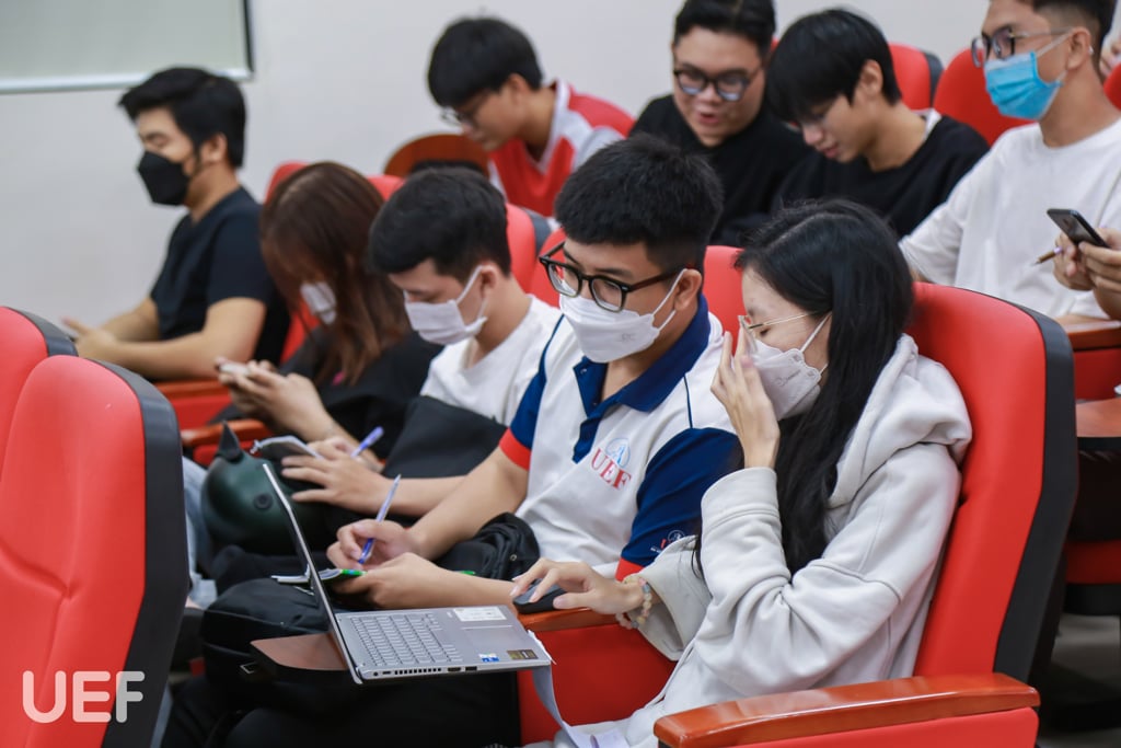 Sinh viên chăm chú lắng nghe và tương tác cùng diễn giả