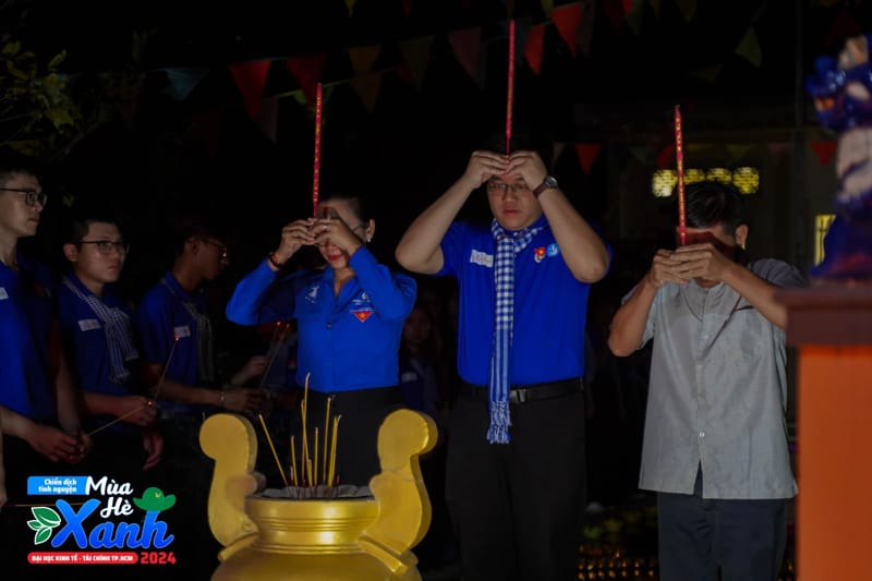 Sau khi hoàn thiện tuyến đường nông thôn dài 160m, các chiến sĩ Mùa hè xanh UEF 2024 tiếp tục thực hiện các nhiệm vụ trọng điểm của chiến dịch. Các bạn đã tổ chức sinh hoạt, dạy tiếng Anh cho thiếu nhi ở địa phương và thực hiện hoạt động “Thắp nến tri ân” hướng đến ngày Thương binh - Liệt sĩ 27/7.