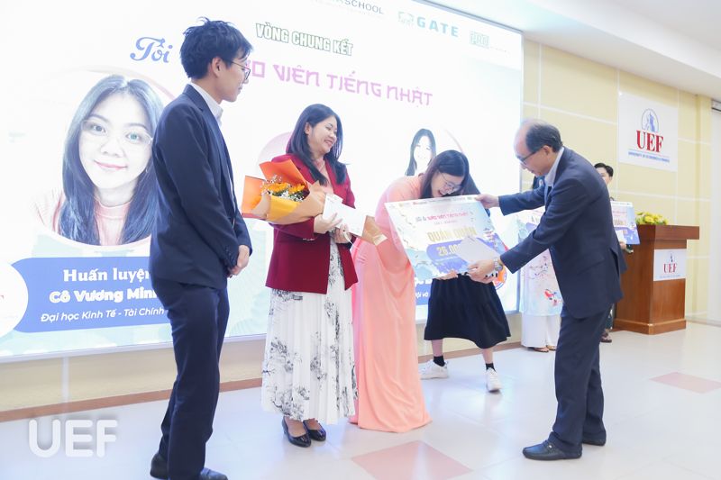 Mở đầu vòng thi quyết định, TS. Nhan Cẩm Trí đã cùng các bạn UEFers nhìn lại hành trình của “Tôi là giáo viên tiếng Nhật lần 1 - 2023” trong hai tháng vừa qua. Thầy nhấn mạnh: “Đây là một trong những hoạt động nhằm đa dạng hoá các sân chơi học thuật của Nhà trường, đồng thời tăng cường sự kết nối với các trường đại học. Sau quá trình không ngừng nỗ lực của cả thí sinh lẫn BTC và các giảng viên hướng dẫn, tôi tin rằng các bạn sẽ mang đến những phần thi thật sự ấn tượng”. Thầy cũng gửi lời cảm ơn đến đối tác và các trường đại học đã luôn đồng hành, hỗ trợ UEF trong cuộc thi lần này.