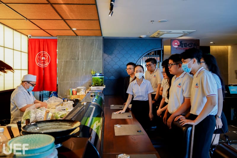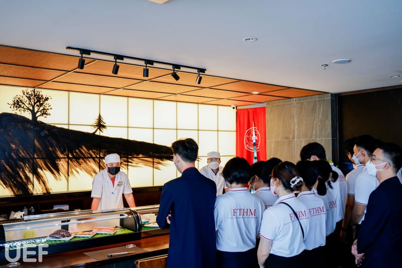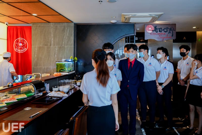 Vừa qua - ngày 23/6, sinh viên hai ngành Quản trị khách sạn; Quản trị nhà hàng và dịch vụ ăn uống thuộc khoa Quản trị du lịch - Khách sạn UEF lại tiếp tục được trải nghiệm tại các địa điểm "hot" trong ngành. Đó là nhà hàng Sushi World và Khách sạn The Reverie Sài Gòn.