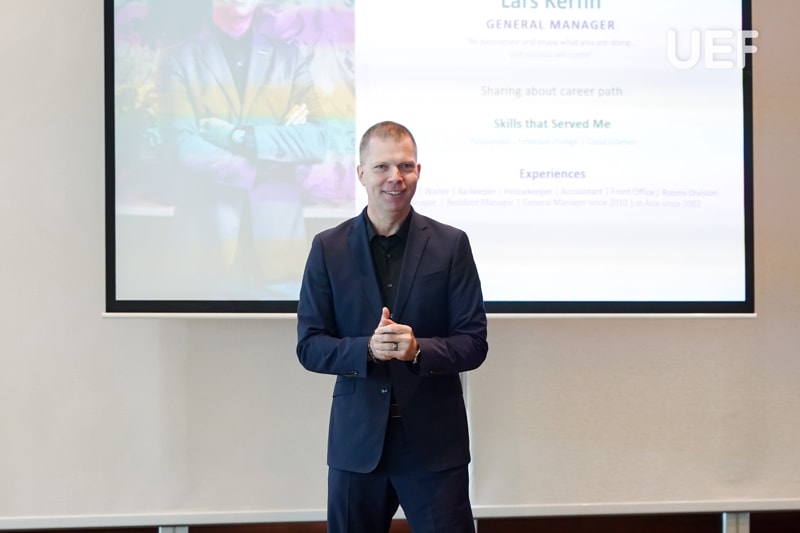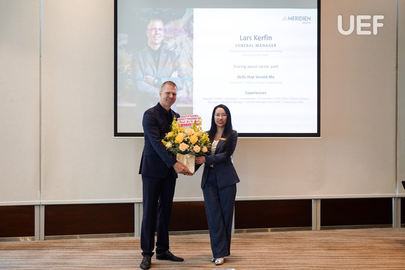 Tại đây, FTHMers đã có dịp lắng nghe những câu chuyện nghề nghiệp và bài học quý báu từ ông Lars Kerfin - Tổng quản lý (GM). Bằng sự nhiệt huyết và kinh nghiệm dày dặn, ông đã khơi dậy nguồn cảm hứng cho các bạn trẻ khi chia sẻ về hành trình của mình cũng như cơ hội phát triển trong ngành khách sạn.