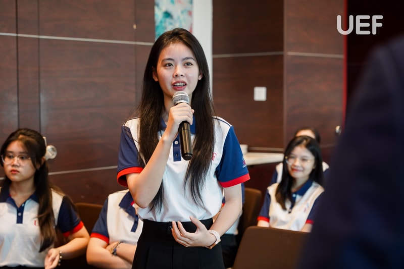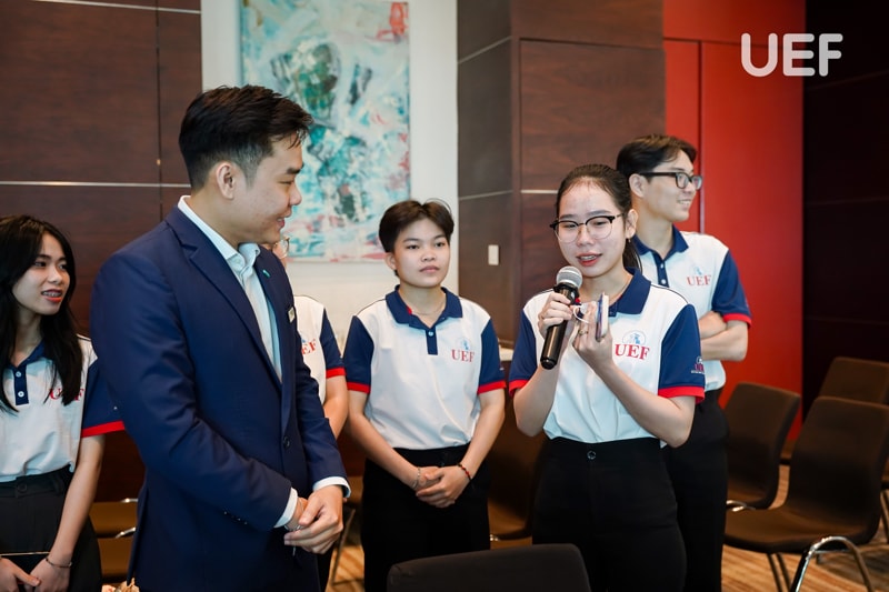Đặc biệt, cuộc hội ngộ cùng với cựu sinh viên Lưu Minh Thy, khóa 2019 ngành Quản trị khách sạn đã tiếp thêm động lực để UEFers theo đuổi công việc mình yêu thích. Được biết, Minh Thy đã bắt đầu thực tập tại đây từ tháng 10/2022. Minh Thy đã chứng minh nỗ lực không ngừng để trở thành thành viên chính thức, gắn bó với khách sạn hơn hai năm tính đến thời điểm hiện nay. Hiện tại, cựu UEFer đang giữ vị trí Human Resources Officer. Câu chuyện của bạn là tấm gương về hành trình thực tập hiệu quả, đồng thời cũng như lời nhắn gửi đầy chân thành đến các thế hệ sinh viên tiếp nối rằng: hãy luôn cầu thị và không ngừng học hỏi, các bạn sẽ nhận được thành tựu xứng đáng.