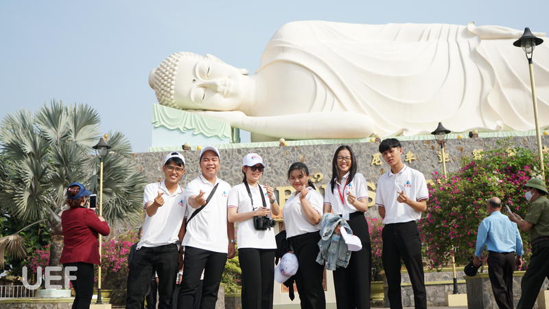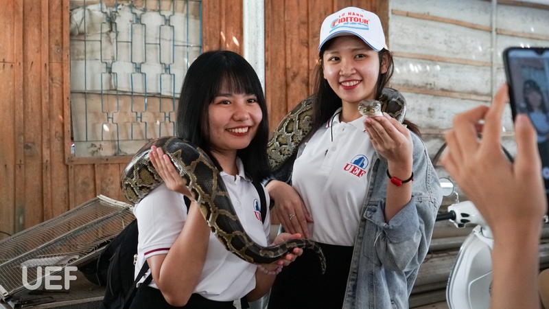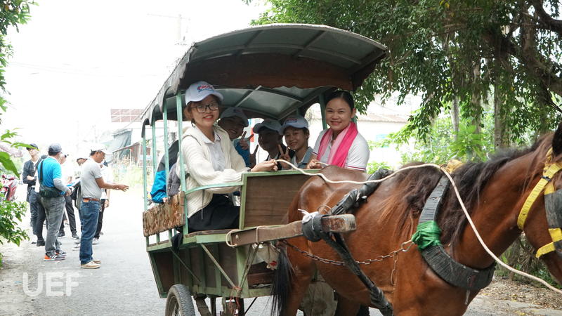 Thêm những điểm đến mới được ghi vào hành trình thực tế của UEFersSau khi rời chùa Vĩnh Tràng, các bạn sinh viên tiếp tục hành trình tham quan 4 cồn Long - Lân – Quy - Phụng nổi tiếng được mệnh danh là “tứ linh” miệt vườn. Tại đây, các bạn được trải nghiệm ngồi xuồng đi dọc theo con sông Tiền chạy qua các cồn và dừng chân tại cồn Thới Sơn (cồn Lân) - nơi mà các bạn được trải nghiệm đi xe ngựa, tham quan trại nuôi ong, xưởng làm kẹo dừa và thưởng thức các đặc sản nơi đây. Rời khỏi cồn Lân, đoàn tiếp tục hành trình đến với cồn Phụng. Nơi đây làm các bạn sinh viên choáng ngợp bởi những kiến trúc thờ tụng độc đáo xưa cổ của đạo Dừa còn được lưu giữ lại như sân Rồng, tháp Hòa Bình.