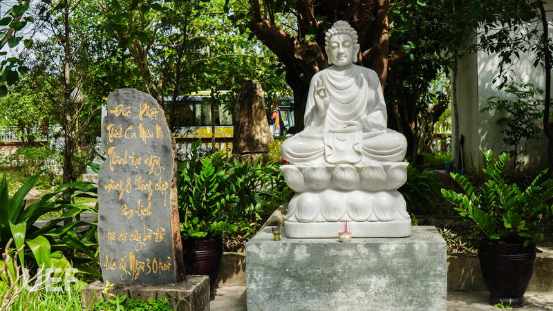 Địa điểm dừng đầu tiên của chuyến hành trình là Mekong Rest Stop - Nơi được thiết kế theo lối kiến trúc mở, hòa mình với thiên nhiên với những nét riêng biệt “xanh – sạch – đẹp”. Tại đây, các bạn đã được thưởng thức bữa sáng, tham quan, chụp hình. Ngồi xe thêm 15 phút, các bạn sinh viên đã đến chùa Vĩnh Tràng (Tiền Giang) - Một trong những ngôi chùa đẹp với kiến trúc nổi bật. Qua lời kể của hướng dẫn viên thì đây là ngôi chùa được xây dựng theo lối kiến trúc tổng hợp giao thoa giữa nền kiến trúc Á - Âu với hơn 60 bức tượng Phật quý được làm từ gỗ, đồng hoặc đất nung và đều được thếp vàng lóng lánh.