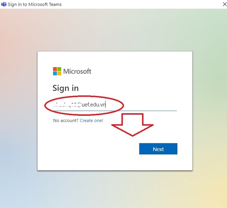 2.2. Đăng nhập bằng tên người dùng và mật khẩu Office 365 của bạn tại UEF đã được cấp