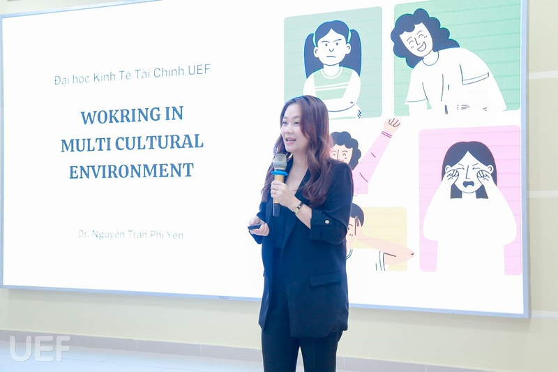 Mở đầu sự kiện, bà Phi Yến đã mang đến cho các bạn những định nghĩa mới về khái niệm “đa văn hóa”. Theo bà, thích nghi trong một môi trường đa văn hóa không chỉ gói gọn trong việc hòa nhập với nhiều người, nhiều quan điểm khác nhau mà còn phải đảm bảo sự công bằng, tôn trọng thành quả lao động của mỗi cá nhân. Bà cũng giới thiệu về các nhóm tính cách, khả năng tư duy thường gặp trong môi trường công sở. Từ đó, diễn giả hy vọng sinh viên sẽ không ngừng tích góp cho mình thật nhiều trải nghiệm để thật sự hiểu được bản thân, cũng như đồng cảm và tôn trọng sự khác biệt của người khác.
