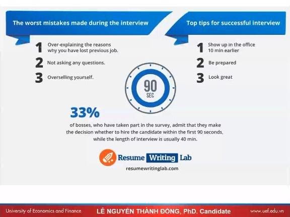 Kỳ vọng lớn nhất của sinh viên khi đi phỏng vấn chính là được tuyển dụng làm việc với vị trí và mức lương mình mong muốn. Vì thế, xuyên suốt buổi trao đổi của mình, thầy Đồng đã hướng dẫn tận tình cho UEFers về những nguyên tắc, lưu ý, cách thức, sự chuẩn bị,... để một cuộc phỏng vấn tuyển dụng được diễn ra suôn sẻ.