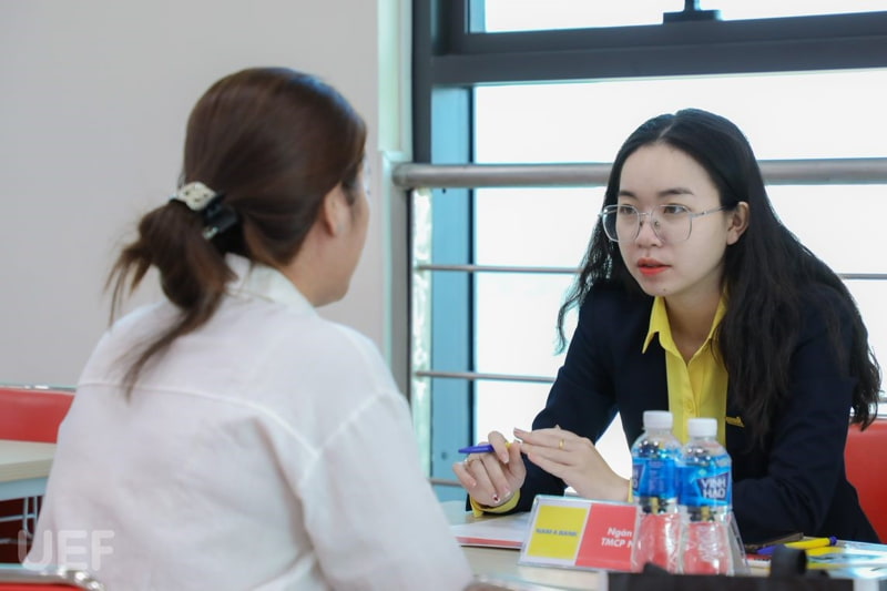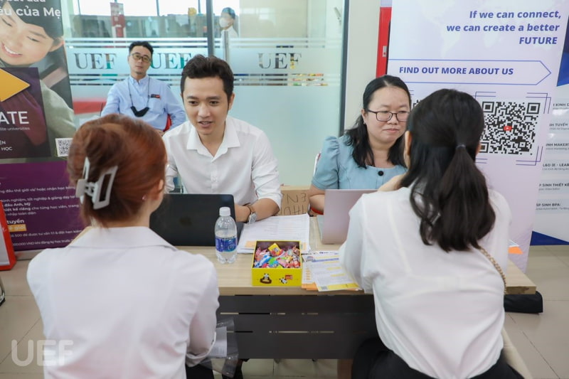 Tại sự kiện, gần 100 doanh nghiệp hợp tác với UEF trên đa lĩnh vực đã có buổi gặp gỡ và trao đổi cùng các bạn sinh viên. Với hình thức phỏng vấn trực tiếp 1-1, đây là cơ hội để nhân sự các công ty, tập đoàn kết nối với UEFers, tìm kiếm thực tập sinh chất lượng cho doanh nghiệp của mình.
