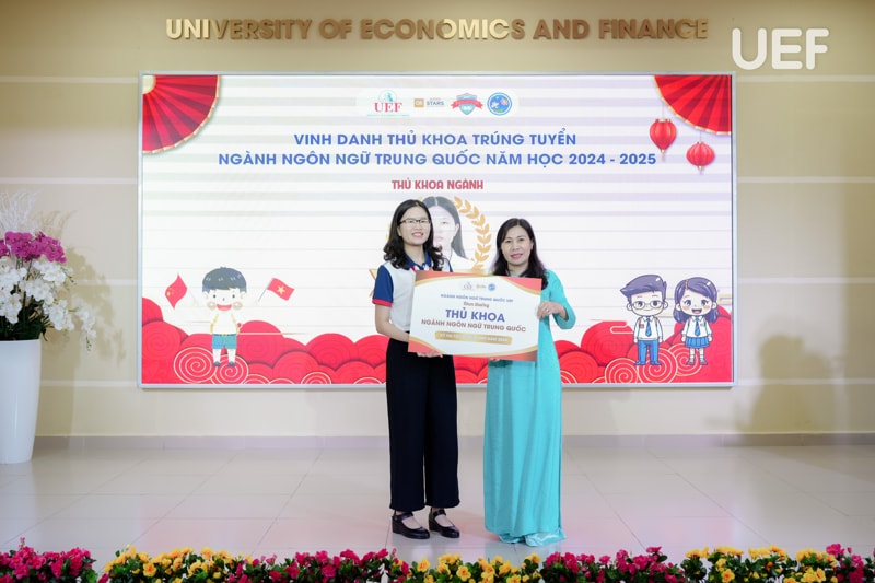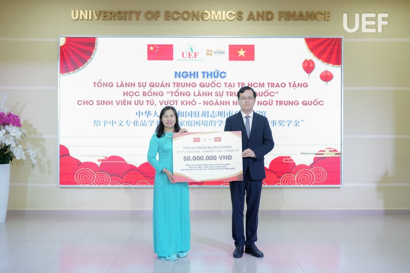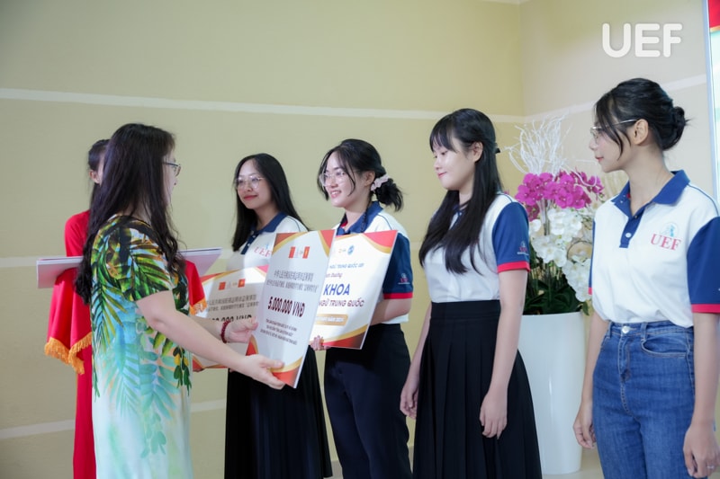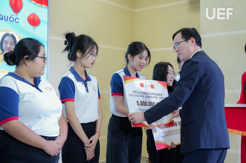 Nhân dịp này, đại diện Tổng Lãnh sự quán Trung Quốc tại TP.HCM đã trao 10 suất “Học bổng Lãnh sự quán Trung Quốc” cho sinh viên ngành. Bên cạnh đó, các bạn sinh viên có thành tích tiêu biểu trong học tập, nghiên cứu khoa học năm học 2023 - 2024; Thủ khoa ngành; Câu lạc bộ Hán ngữ UEF cũng được vinh danh và tuyên dương tại chương trình.