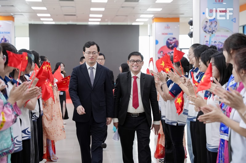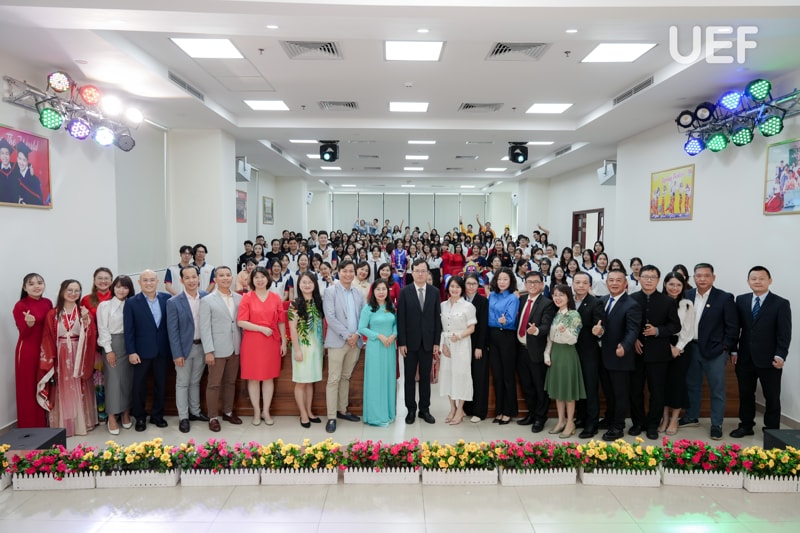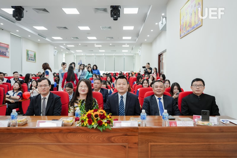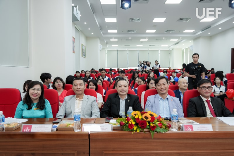 Về phía UEF có cô Đinh Thị Diệu Hương - Thành viên Hội đồng trường, TS. Nhan Cẩm Trí - Phó Hiệu trưởng, TS. Ngô Minh Hải - Phó Hiệu trưởng, TS. Nguyễn Thị Lan - Phó trưởng Khoa Ngôn ngữ và Văn hóa quốc tế cùng đông đảo lãnh đạo, đại diện các đơn vị Nhà trường và sinh viên, tân sinh viên ngành Ngôn ngữ Trung Quốc.