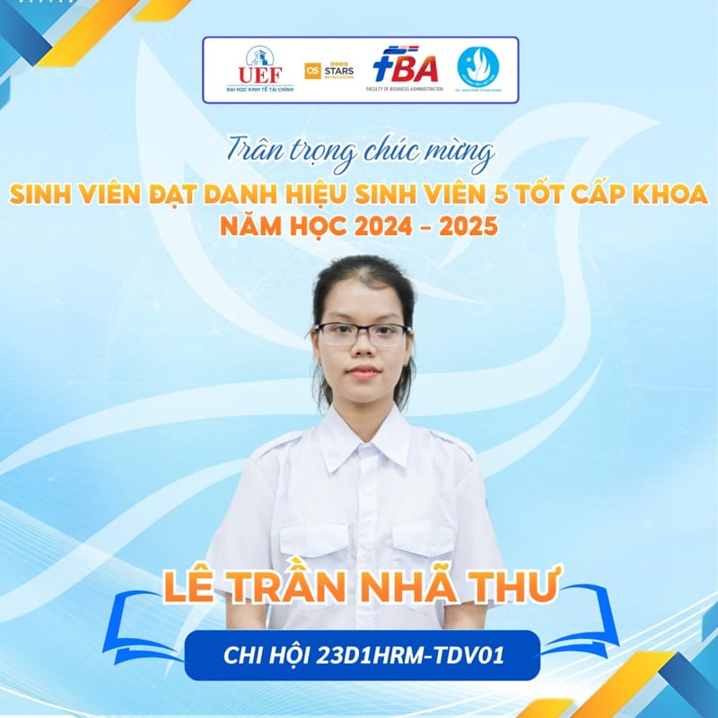 Trong đợt xét chọn năm học 2024-2025, 24 sinh viên đã xuất sắc đạt danh hiệu “Sinh viên 5 tốt” cấp khoa, tăng 4 sinh viên so với năm học trước, cho thấy sự lan tỏa tích cực của phong trào thi đua học tập, rèn luyện và cống hiến trong cộng đồng sinh viên Khoa Quản trị kinh doanh.