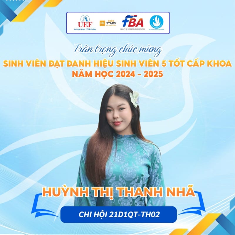Các gương mặt đạt danh hiệu "Sinh viên 5 Tốt" của Khoa Quản trị kinh doanh năm học 2024-2025