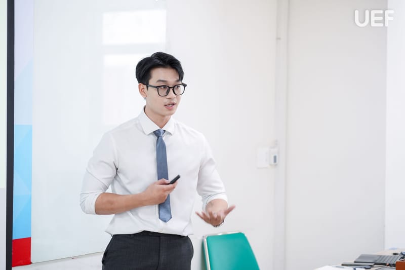 Sau phần trình bày, sinh viên lắng nghe nhận xét và trực tiếp trả lời các câu hỏi phản biện từ Hội đồng đánh giá. Bên cạnh việc ghi nhận những ưu điểm về nội dung và hình thức thể hiện, Hội đồng cũng đưa ra những góp ý chi tiết để sinh viên điều chỉnh khóa luận thành bản hoàn thiện cuối cùng.