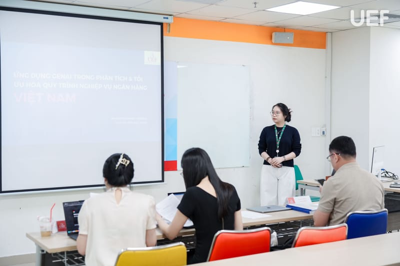 Cụ thể, sinh viên Đỗ Ngọc Dũng nghiên cứu đề tài “Token hóa tài sản thực: Cơ hội và thách thức cho Việt Nam qua kinh nghiệm quốc tế”; bạn Đinh Nguyễn Lan Anh với đề tài “Ứng dụng Generative AI trong phân tích và tối ưu hóa quy trình nghiệp vụ ngân hàng tại Việt Nam”; bạn Bùi Thanh Phương trình bày đề tài “Giải pháp quản trị và dự báo doanh thu bằng công cụ biểu đồ hóa trong phân tích dữ liệu tại Công ty Sunrise Events Việt Nam”.