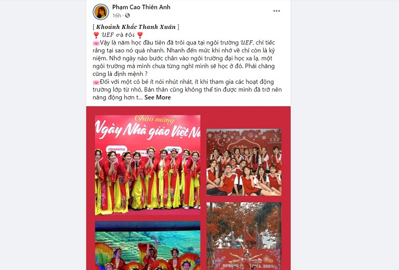 Chỉ điểm sơ qua, UEFers nhà mình đã thấy “choáng ngợp” với list hoạt động này chưa? Vẫn còn rất nhiều những sân chơi, sự kiện đón chờ các bạn hòa mình. Không chỉ học hỏi kiến thức, kỹ năng, tích lũy năng lượng cho hành trình mới, các bạn còn có cơ hội bày tỏ tình cảm, cảm nhận của mình về Nhà UEF. Vậy chần chờ gì nữa, cùng tìm hiểu và tham gia ngay các hoạt động ý nghĩa này nhé.