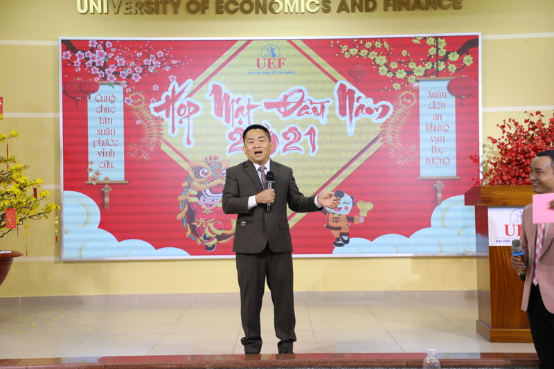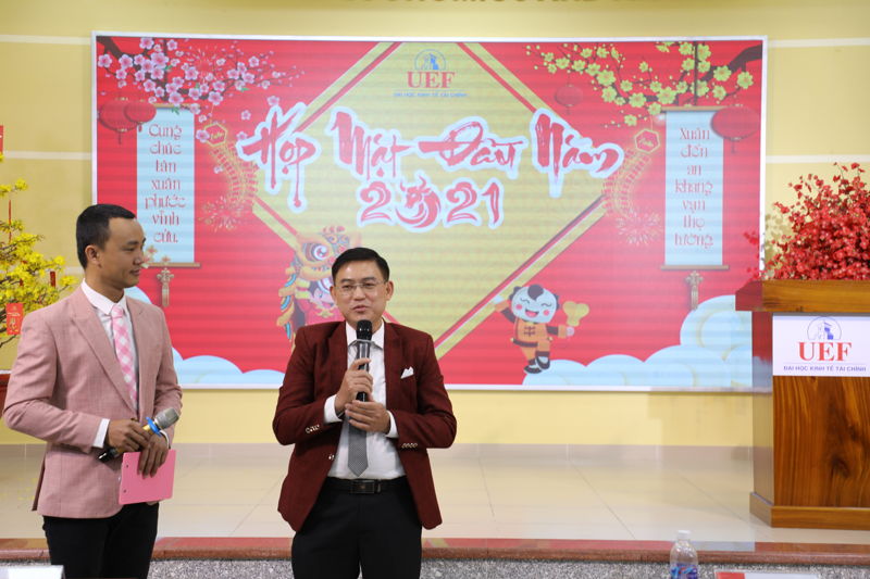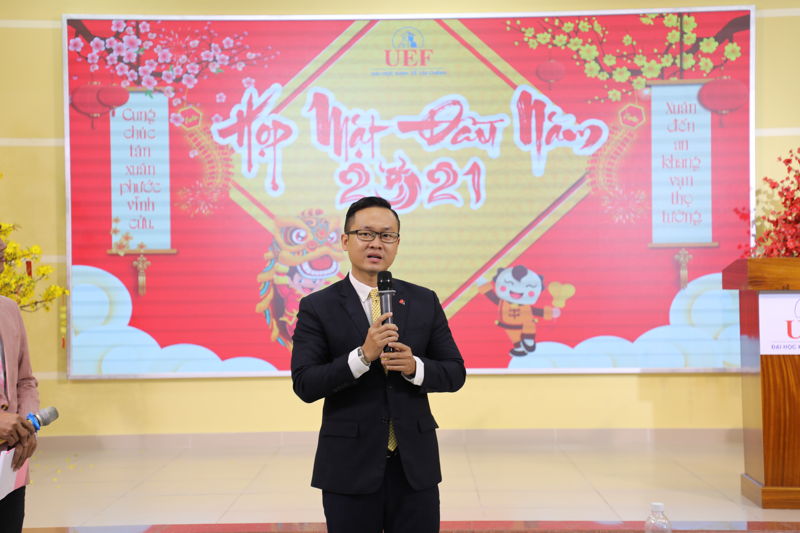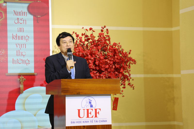 Trong không khí "đoàn viên" thân tình cùa Nhà UEF, TS. Nguyễn Thanh Giang - Hiệu trưởng Nhà trường đã gửi lời chúc mừng năm mới đến tập thể cán bộ - giảng viên - nhân viên trường, chúc "đại gia đình" dồi dào sức khỏe, công việc thuận lợi, cuộc sống hạnh phúc và bình an.