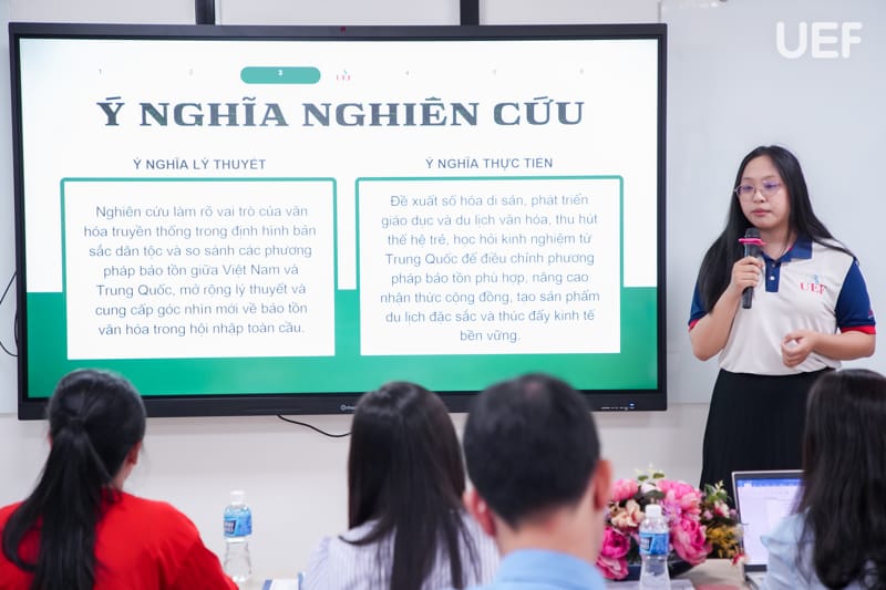 Ngoài ra, ứng dụng công nghệ và quá trình học tiếng Trung của sinh viên UEF cũng là lĩnh vực được chú trong nghiên cứu, nổi bật như “Ứng dụng công nghệ số hóa trong việc học tiếng Trung của sinh viên UEF”, “Nghiên cứu các yếu tố ảnh hưởng đến quá trình học tiếng Trung của sinh viên ngành Ngôn ngữ Trung Quốc tại UEF”, “Những yếu tố ảnh hưởng đến sự sa sút và chán nản trong học tập”, “Văn hóa ứng xử trên không gian mạng: Quan điểm cá nhân hay bạo lực ngôn từ”.