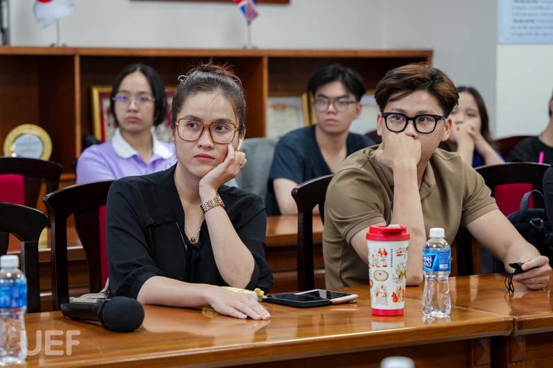 Từ phần chia sẻ đến từ hai vị diễn giả, sinh viên UEF có dịp thể hiện vốn kiến thức đã lĩnh hội, cùng nêu bật những ý tưởng thú vị. Cũng chính từ những giải pháp được chuyên gia phân tích, góp ý, các bạn dễ dàng rút ra cho mình bài học thực tiễn để ứng dụng trong quá trình hoàn thiện khóa học và công việc sau này.
