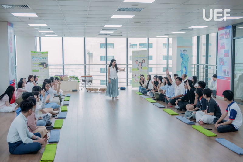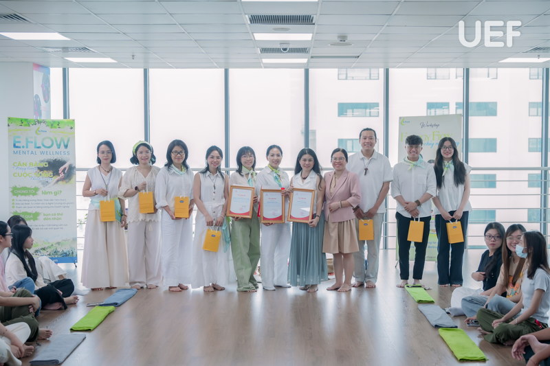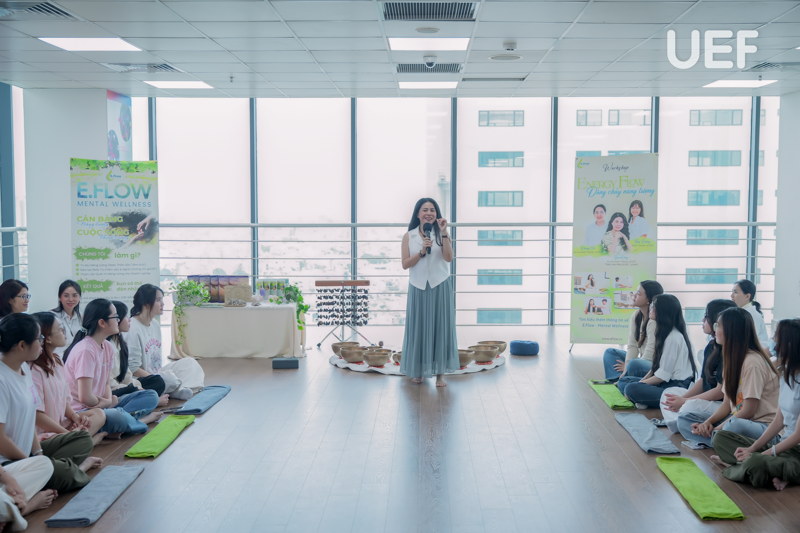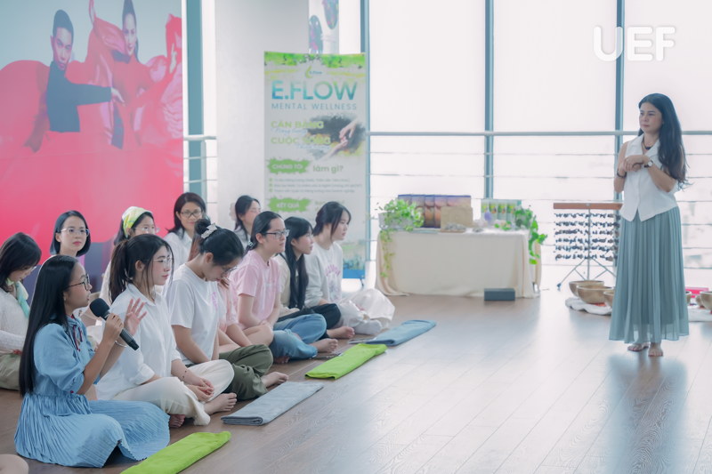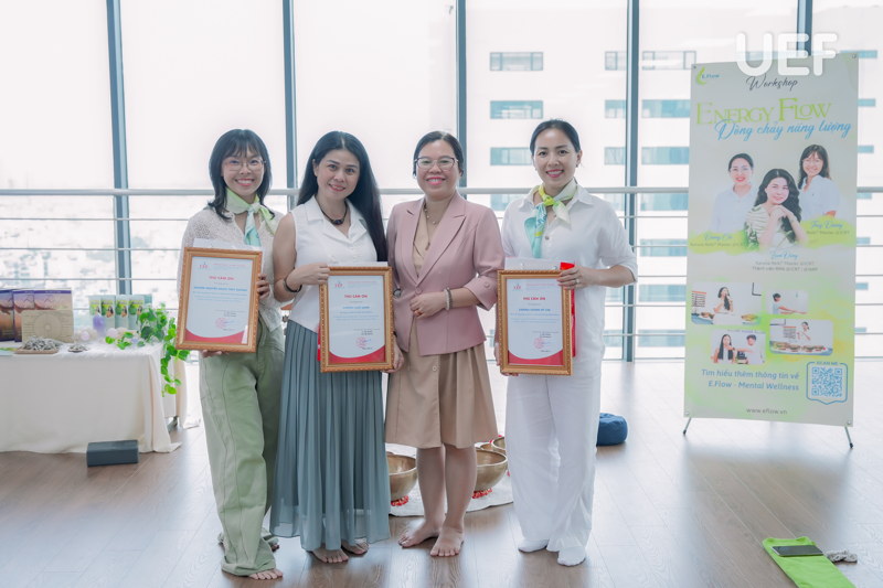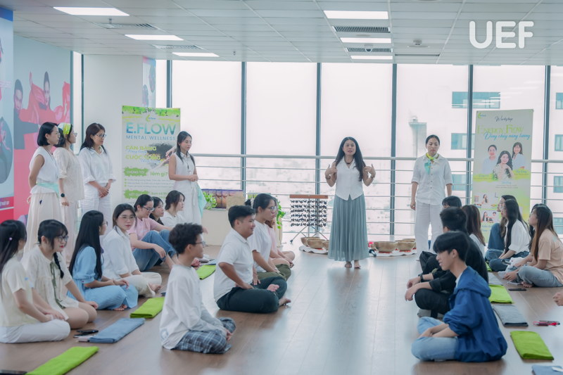 Workshop khép lại trong không gian tĩnh lặng, giúp sinh viên UEF nuôi dưỡng sự tích cực, vững vàng hơn trong mỗi bước đi của hành trình trưởng thành. Được biết, E.Flow - Mental Wellness cũng đã tài trợ các suất trải nghiệm miễn phí dành cho sinh viên UEF có nhu cầu tìm hiểu sâu hơn về năng lượng và cân bằng cảm xúc. Đây là món quà ý nghĩa, thể hiện tinh thần đồng hành của doanh nghiệp và Nhà trường trong việc chăm sóc sức khỏe tinh thần cho thế hệ trẻ.