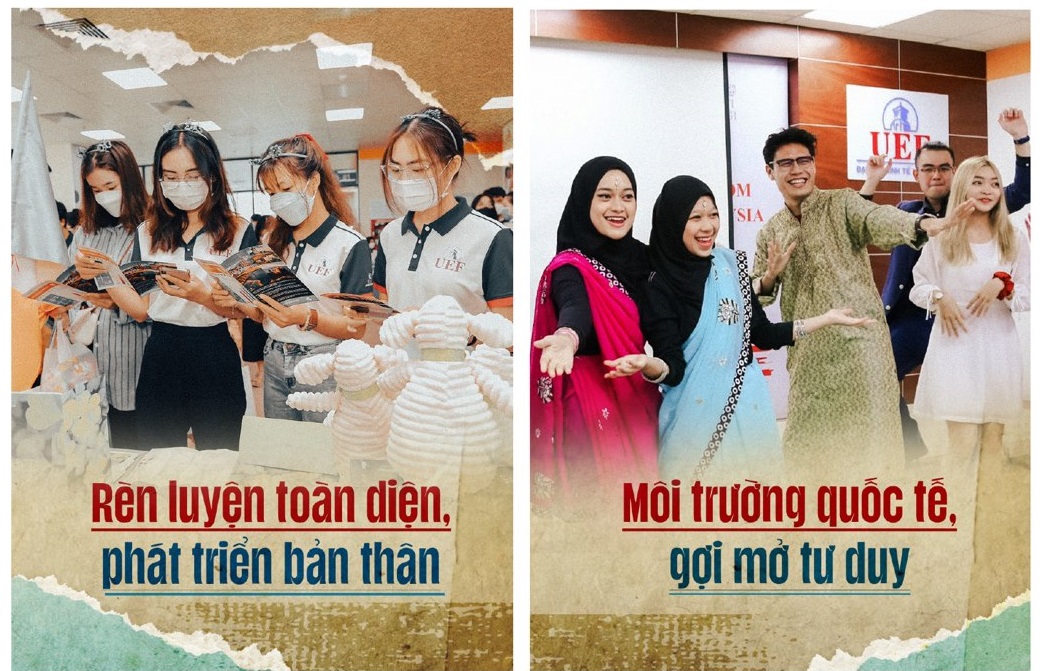 Là môi trường học tập song ngữ, UEF luôn tạo điều kiện để sinh viên tiếp xúc và giao lưu với nhiều chuyên gia quốc tế trong các hoạt động ngoại khóa. Từ kinh nghiệm và chia sẻ của các chuyên gia quốc tế, sinh viên có thể học hỏi cách nhìn nhận vấn đề chuyên nghiệp hơn. Những kiến thức và suy nghĩ không còn “gói gọn” với bối cảnh trong nước, mà là phát triển, tư duy logic theo góc nhìn và tình hình chung của toàn cầu. Sinh viên trường đã được đón tiếp và gặp gỡ nhiều đại diện ở Lãnh sự quán các nước tại Việt Nam như Anh, Ấn Độ, Lào, Hàn Quốc,… Trong các cuộc thi, sự tham gia của khách mời quốc tế là điều thường xuyên xuất hiện tại UEF. Các hoạt động mang tính quốc tế cũng được diễn ra giúp sinh viên tìm hiểu văn hóa, đất nước, con người của các quốc gia, từ đó mở rộng kiến thức, góc nhìn đa chiều. ![]() Về hoạt động cộng đồng, Nhà trường nhắm đến các tiêu chí phát triển bền vững song hành với trách nhiệm cộng đồng thông qua hàng trăm hoạt động khác nhau từ các cấp địa phương đến quốc tế. Các hoạt động ngoại khóa thường xuyên được tổ chức cho sinh viên để các bạn rèn luyện kỹ năng mềm. Mặt khác, yếu tố để sinh viên thụ hưởng các chương trình học tập mà trường mang lại một cách thuận tiện là điều kiện cơ sở vật chất hiện đại. Từ phòng học, khu vực ngoại khóa, tập luyện thể chất, văn nghệ,… tất cả được trang bị đầy đủ dụng cụ và thiết bị hiện đại, tạo tinh thần thoải mái để các bạn học tập, rèn luyện, nghiên cứu.