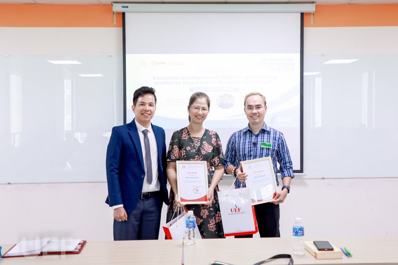 "Chỉ còn ít tháng nữa, các bạn sinh viên K19 Khoa Tiếng Anh sẽ chính thức tham gia vào thị trường lao động. Qua chương trình talkshow này, Nhà trường hy vọng sẽ giúp các bạn sinh viên trang bị đầy đủ kiến thức, kỹ năng cho kỳ thực tập phía trước" - ThS. Huỳnh Quốc Phong - Giám đốc Trung tâm Hợp tác doanh nghiệp chia sẻ.